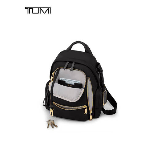 首要,让我们来看看这款包包的规划美学。途明(TUMI)VOYAGEUR女士双肩包选用了精约与豪华的完美结合,黑色的主色调调配金色拼接,散发出低沉的豪华感,适宜各种场合的调配,不管是职业装仍是休闲装都能轻松驾御。
